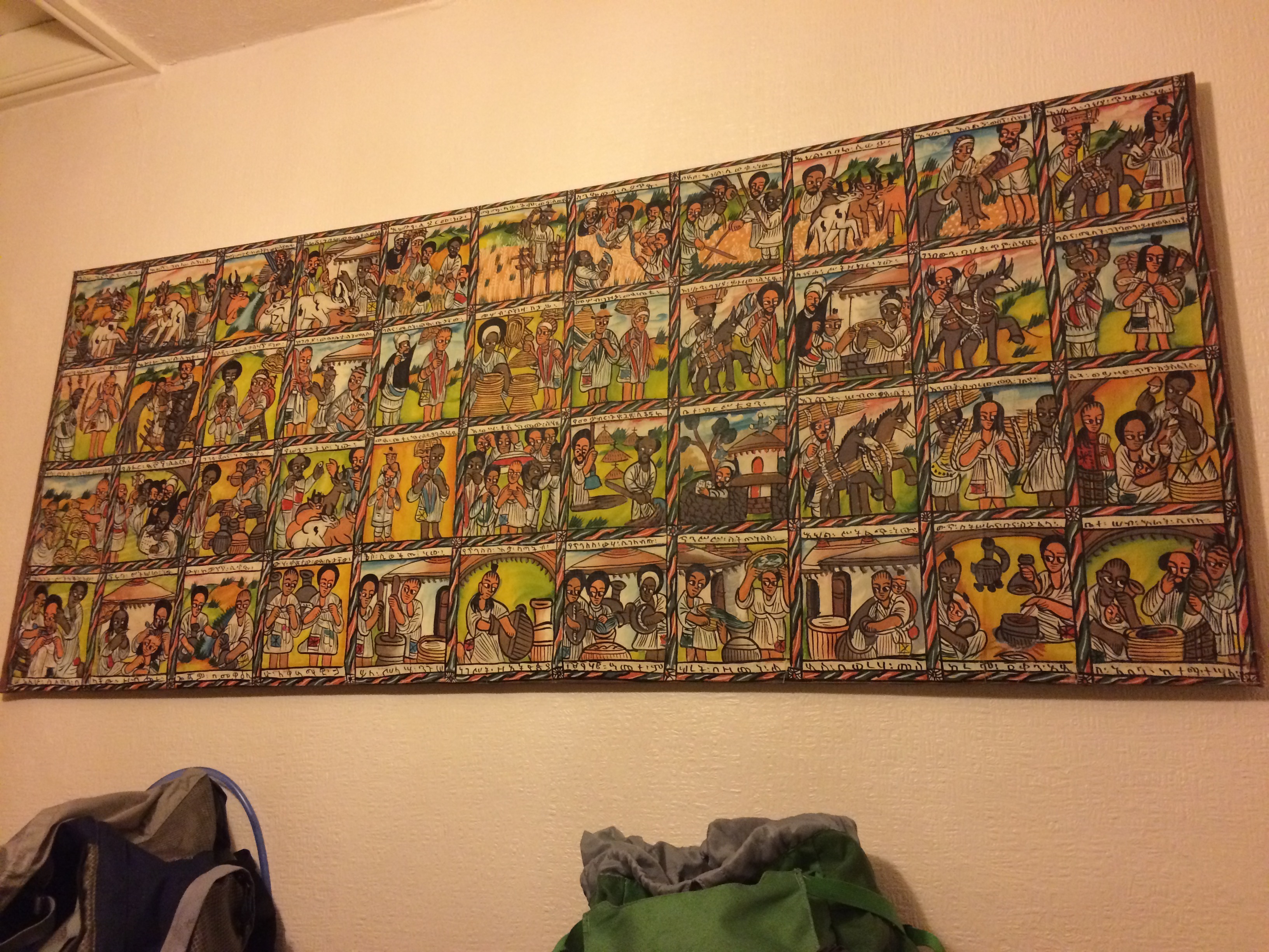 Our final approach on our final approach into town a cyclist informed us that the pub had “run out of beer” which made me rather thank full that we had not been lucky enough to get into the Youth Hostel and were staying with a very generous lady in Long Eaton who had kindly offered to pick us up from outside the pub. Her B&B is lovely and can only be empty because of a lack of advertising. I can not emphasise how delightful it is when there is the ability to get a even a small amount of washing done. Though I am curious what story is represented in this artwork. It’s a long day tomorrow and as the proprietress also has a regular job we are able to have breakfast at 0630 making our long trip (20.52 miles) to Middleton achievable in-time for dinner!
